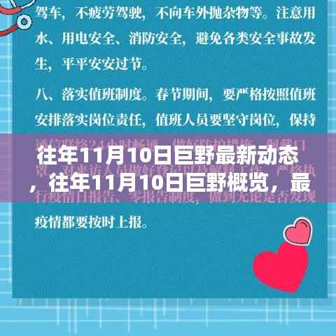 往年11月10日,巨野县在经济建设、文化教育和生态环境等方面取得了显著进展,这些成果的取得离不开当地政府、企业和居民的共同努力,巨野县将继续坚持科学发展、绿色发展理念,推动经济社会持续健康发展。